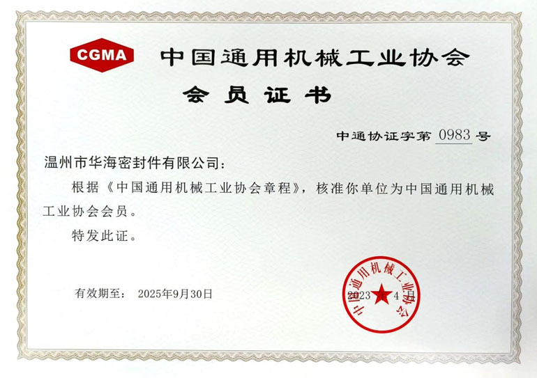 中國通用機械工業(yè)協(xié)會會員單位證書 慈溪密封行業(yè)協(xié)會會員單位證書
